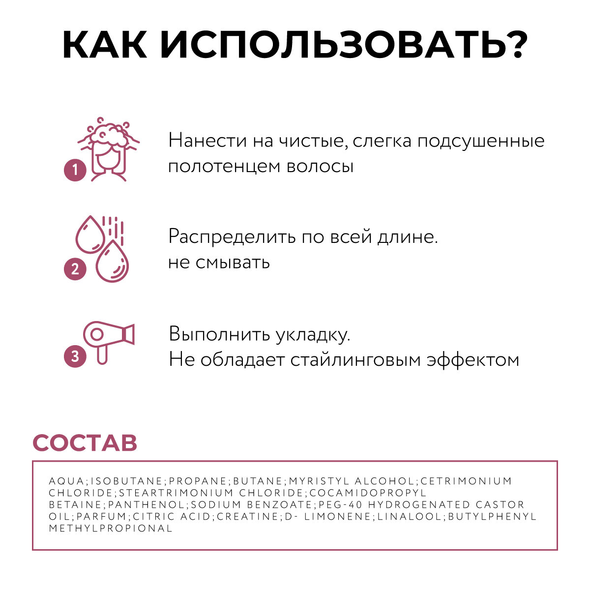 | Нанесение | на влажные волосы |
