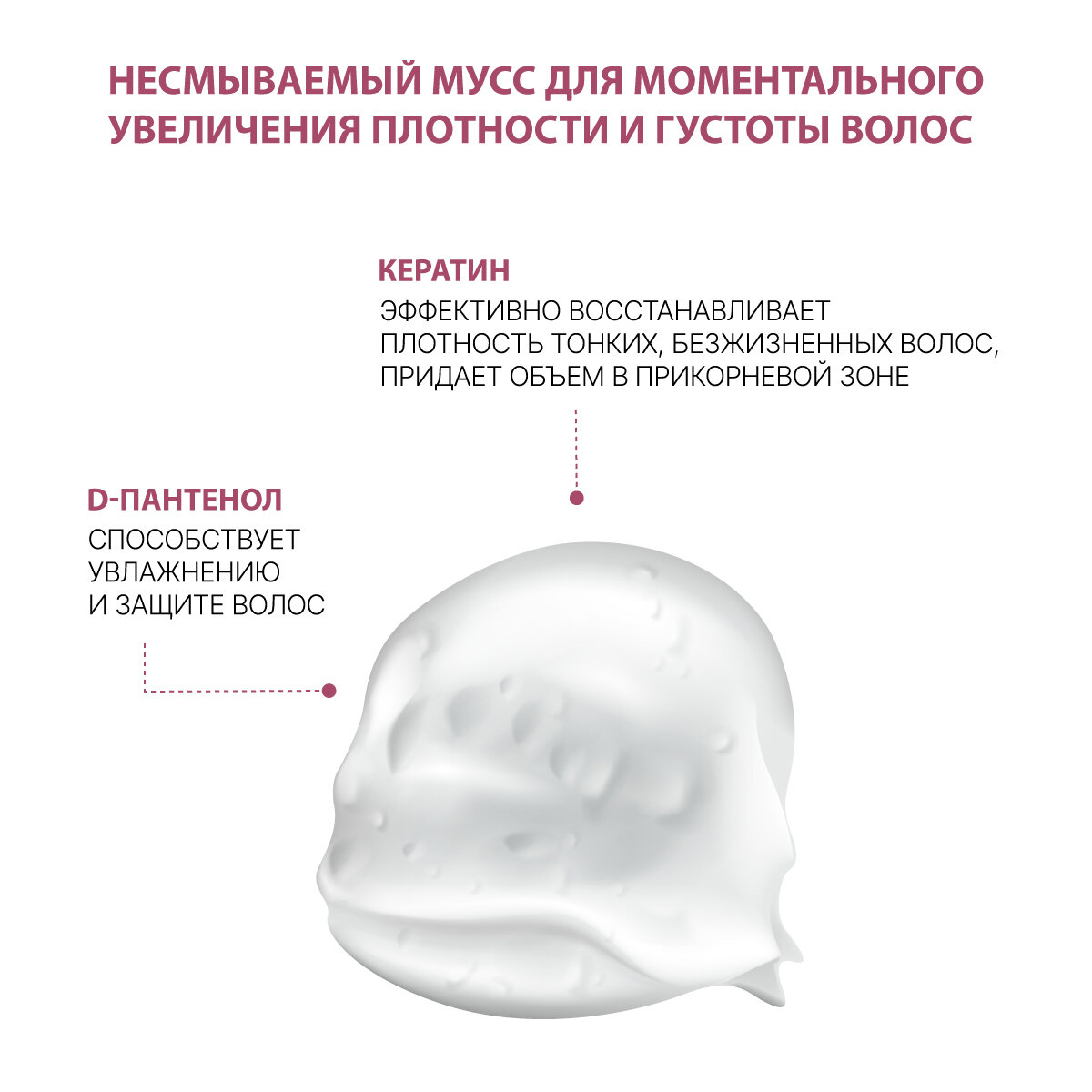 | Плюсы: | Утолщает волосы без утяжеления. Придает объем |