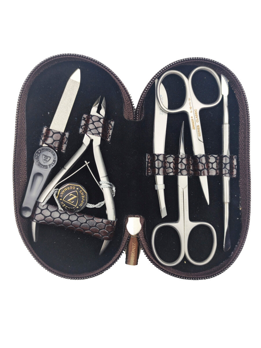 Купить Маникюрный набор ZINGER на молнии MS-7104, 6 предметов, чехол коричневый