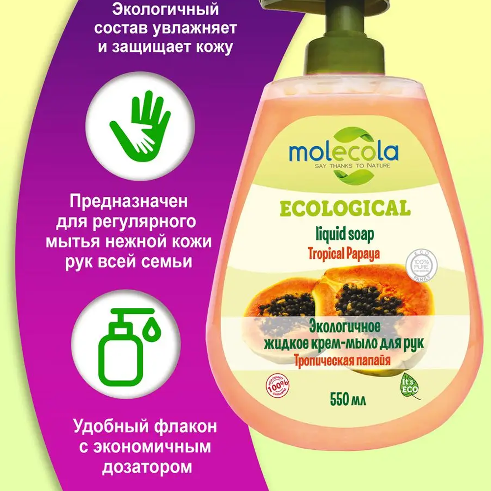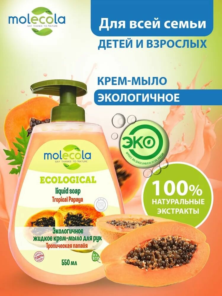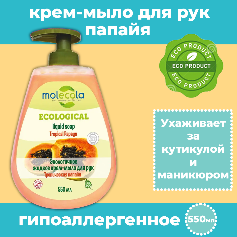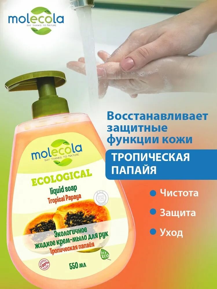 MOLECOLA Экологичное крем-мыло для рук Тропическая папайя, 550 мл