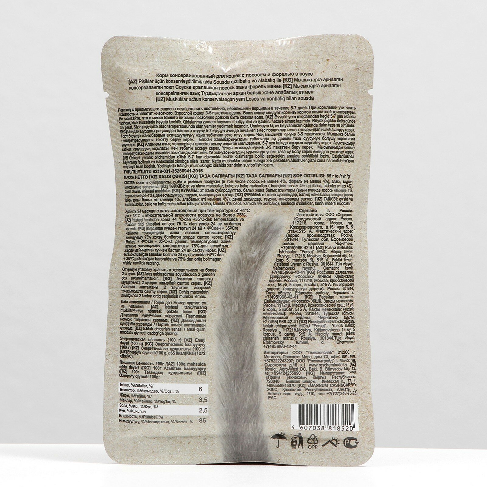 Влажный корм для кошек, лосось/форель в соусе, пауч, 85 г интересное: