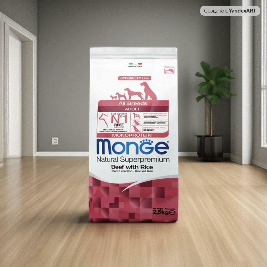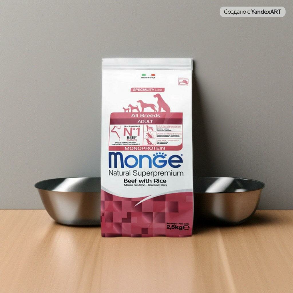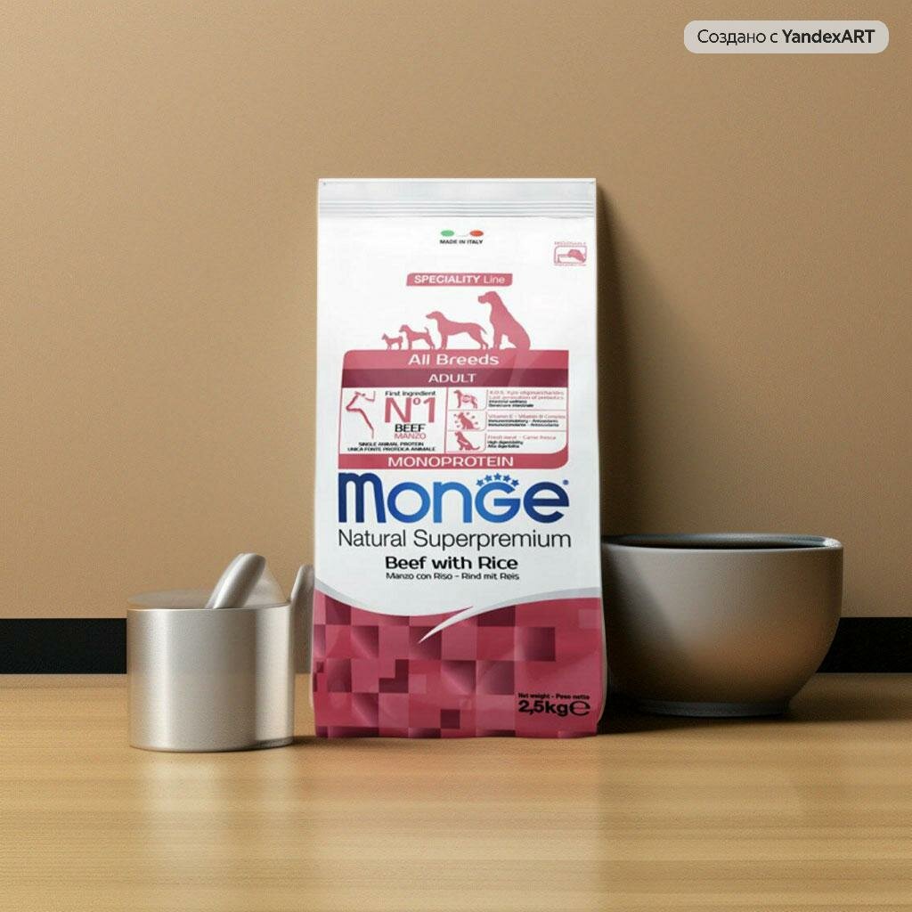Корм сухой Monge Dog Monoprotein All Breeds Beef and Rice для собак всех пород, говядина с рисом, 2,5 кг