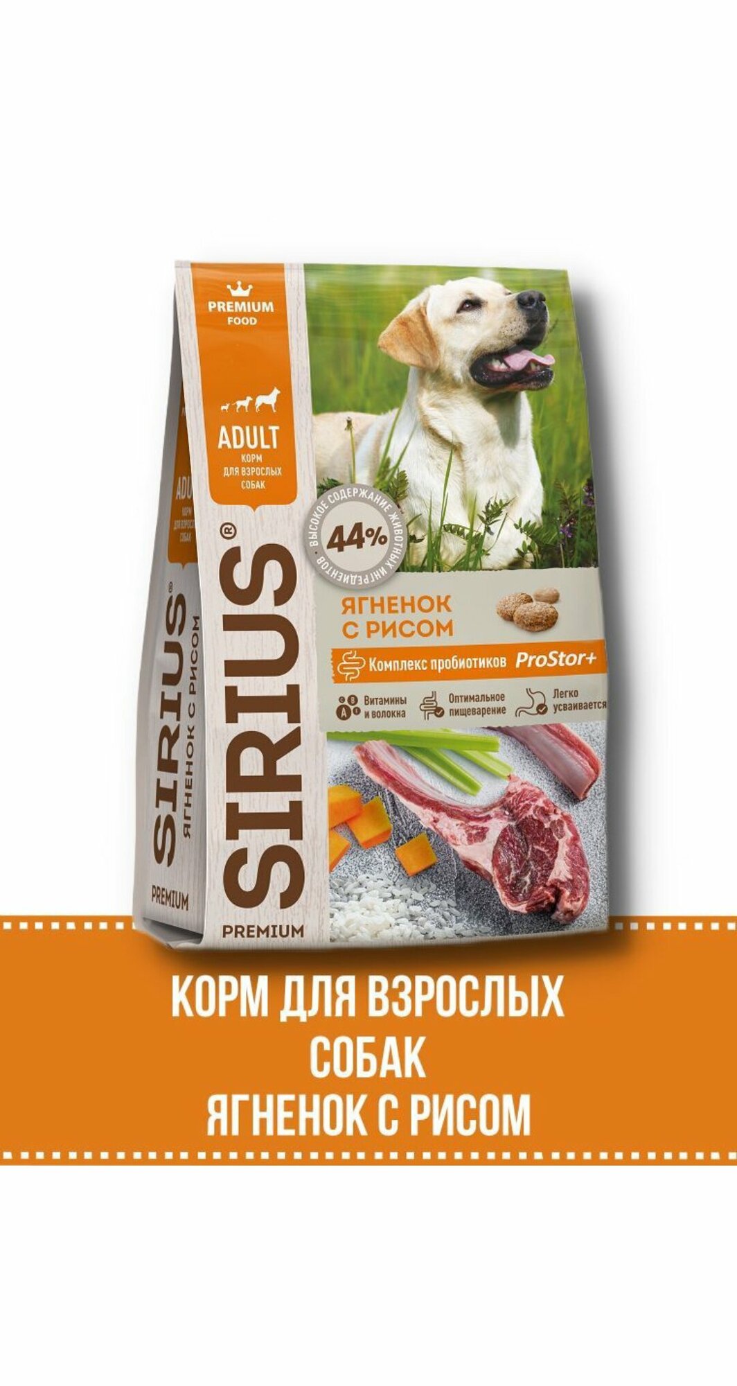 Сухой корм SIRIUS "Ягненок с рисом" для взрослых собак, 2кг