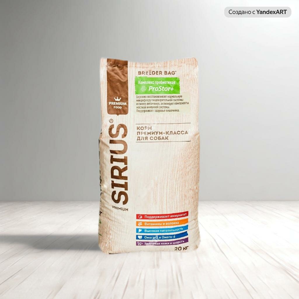 Сухой корм премиум-класса SIRIUS для взрослых собак "Мясной Рацион" 15 кг