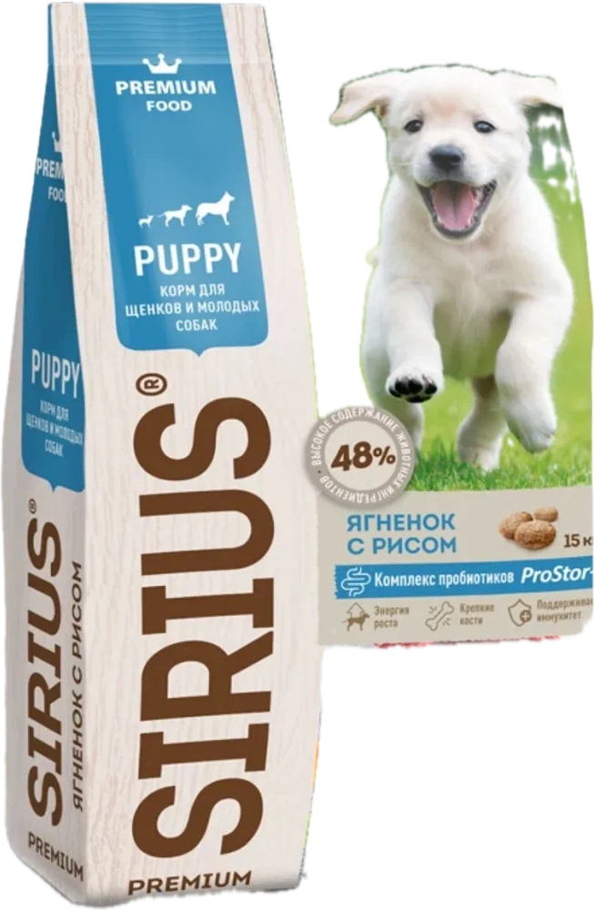 Сухой корм sirius для щенков ягненок и рис 15кг