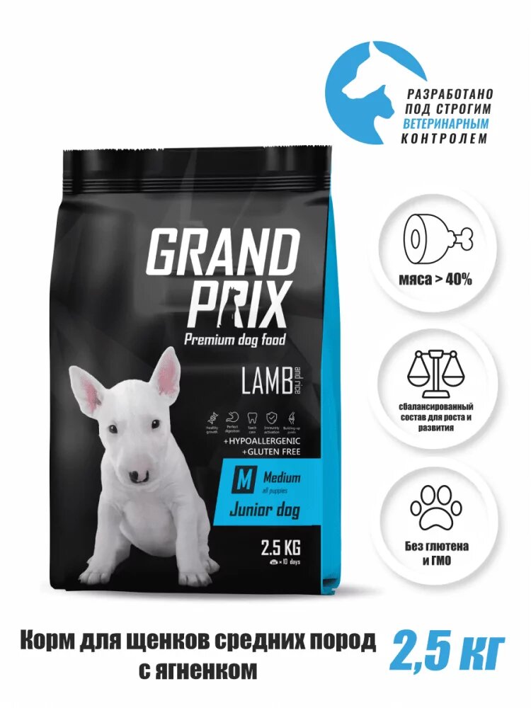 GRAND PRIX 2,5кг Корм для щенков средних пород, ягнёнок