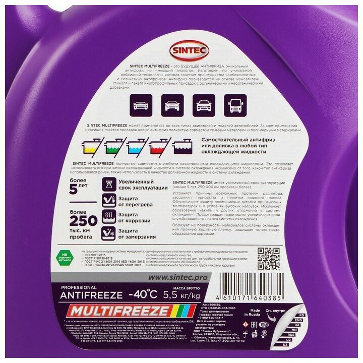 антифриз sintec multi freeze violet 5 кг акция 5 кг по цене 4 кг