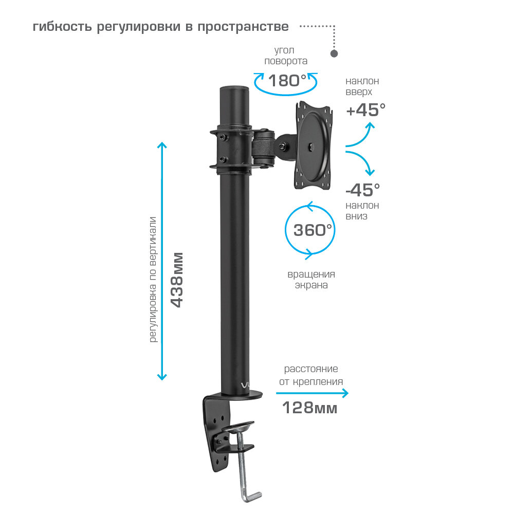 Кронштейн настольный VLK TRENTO-91 черный (51045) интересное: