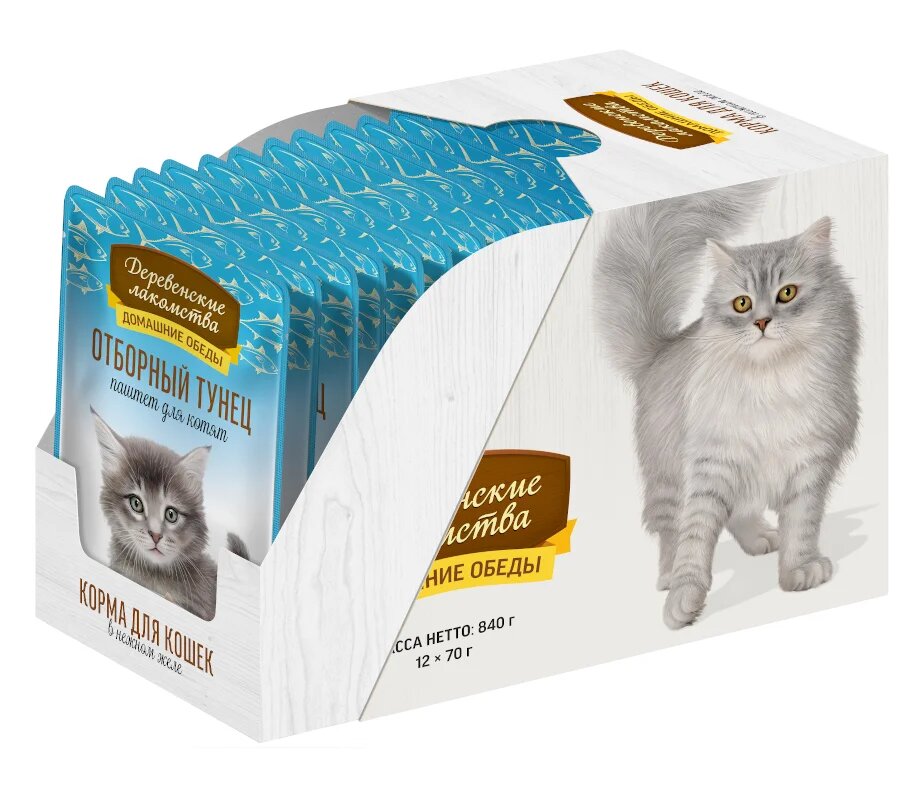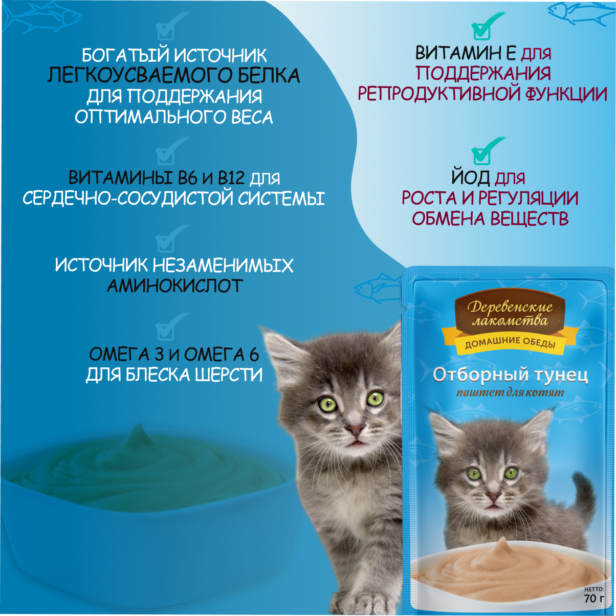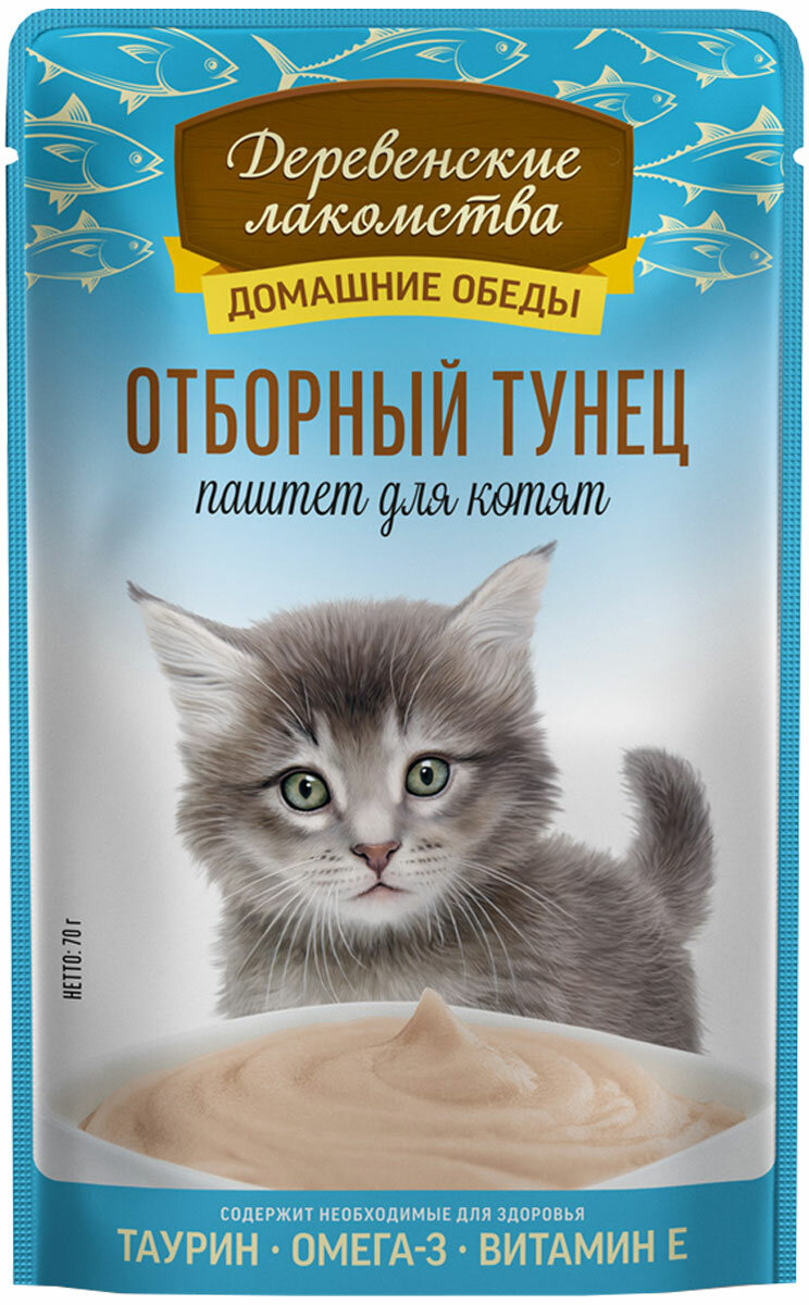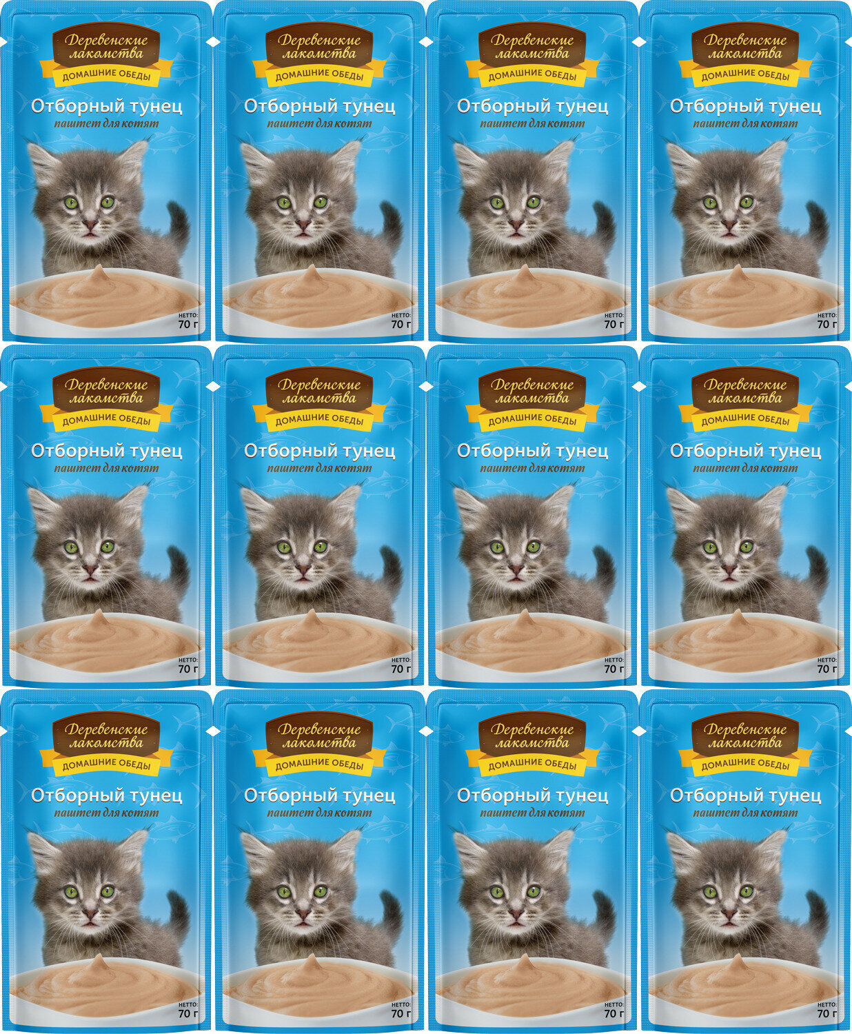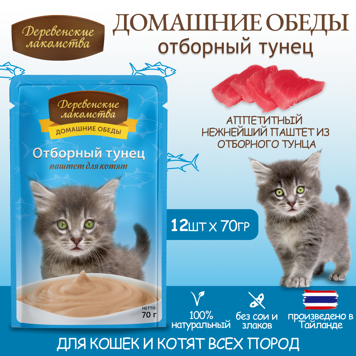 Купить Корм Деревенские лакомства "Отборный тунец" (паштет) для котят, 70 г x 12 шт