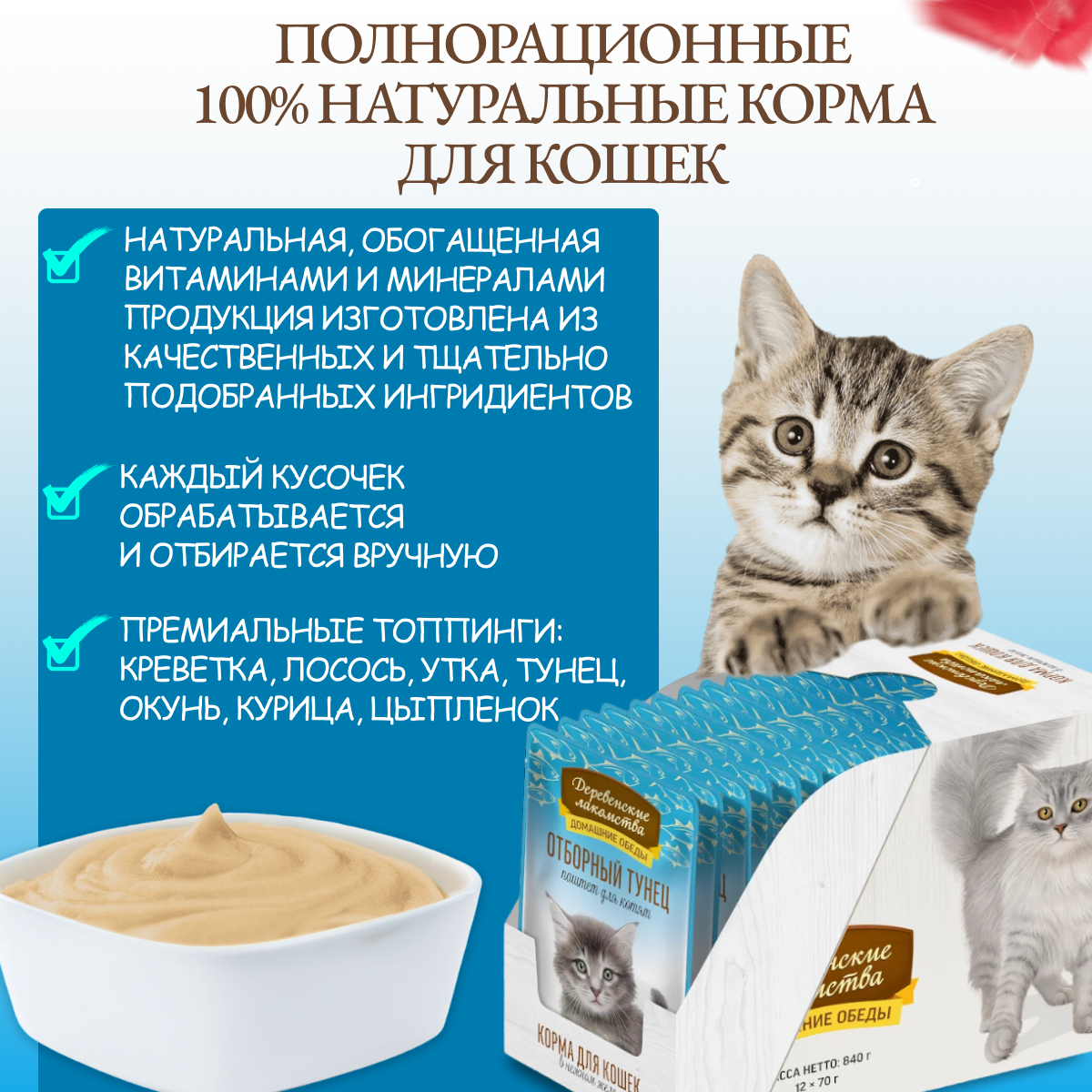 Деревенские лакомства домашние обеды для котят паштет с отборным тунцом (70 гр х 12 шт)