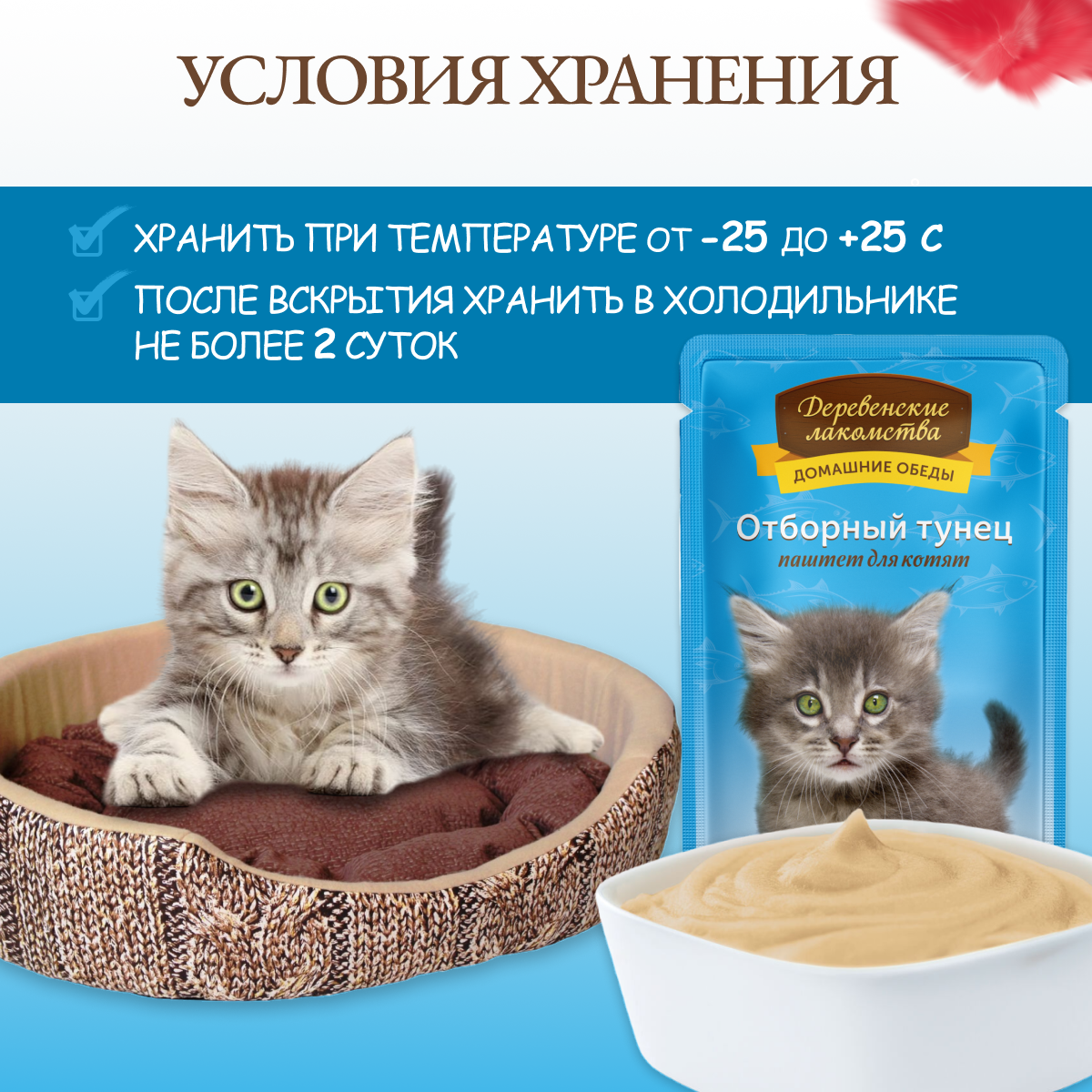 Деревенские лакомства Консервы для кошек «Отборный тунец паштет для котят» , 0,07 кг, 36689 (2 шт)