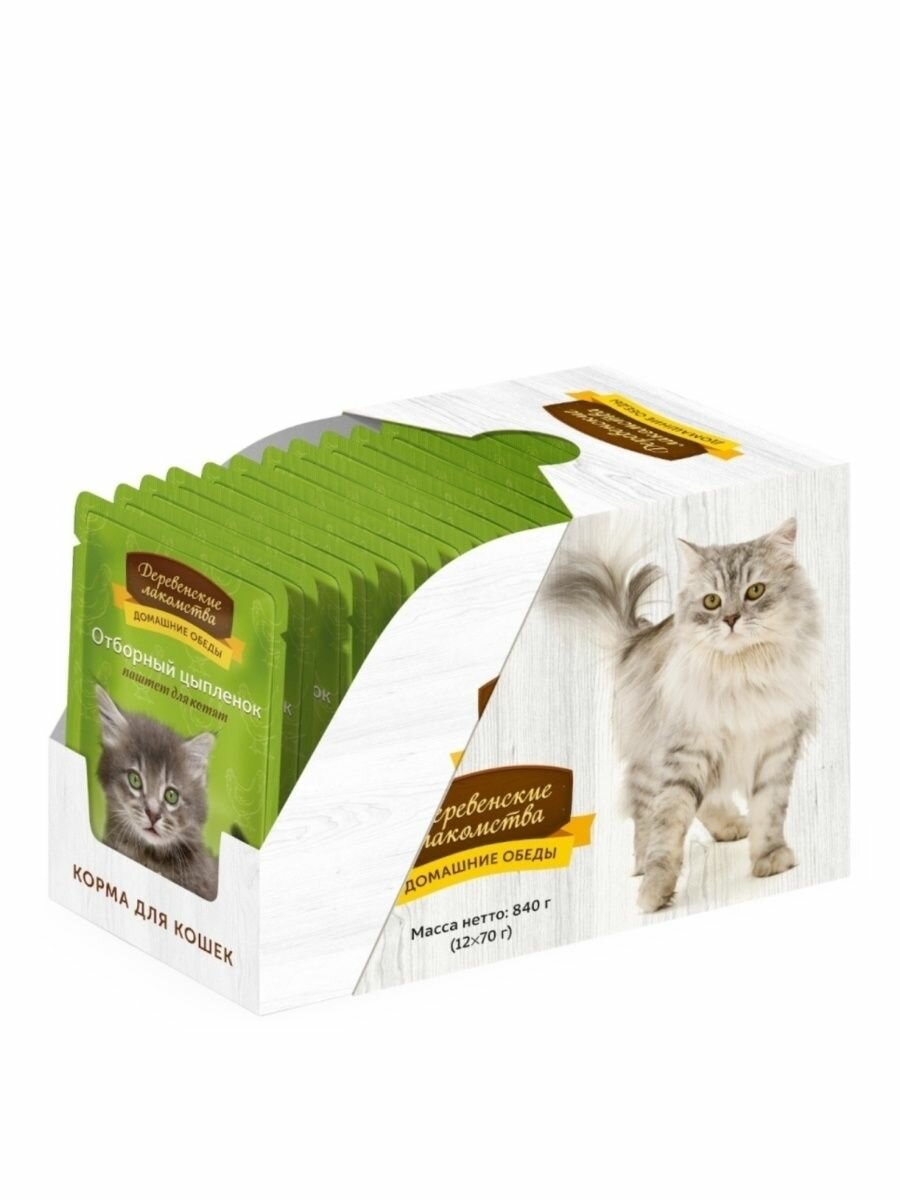 Деревенские лакомства домашние обеды для котят паштет с отборным цыпленком (70 гр х 12 шт)