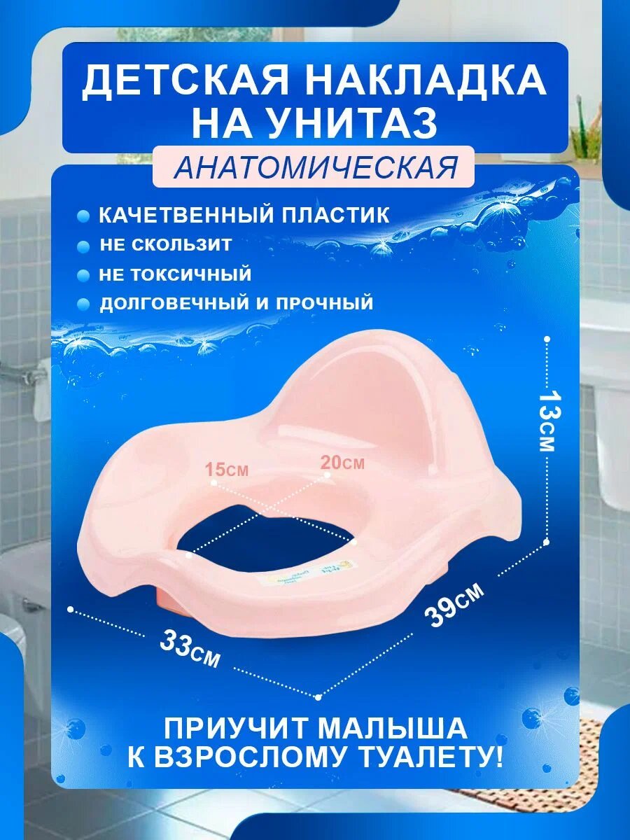 Детская накладка на унитаз пластиковая, универсальное сидение для мальчиков и девочек многоразовое розовое, адаптер в санузел дома сада дачи Little Angel