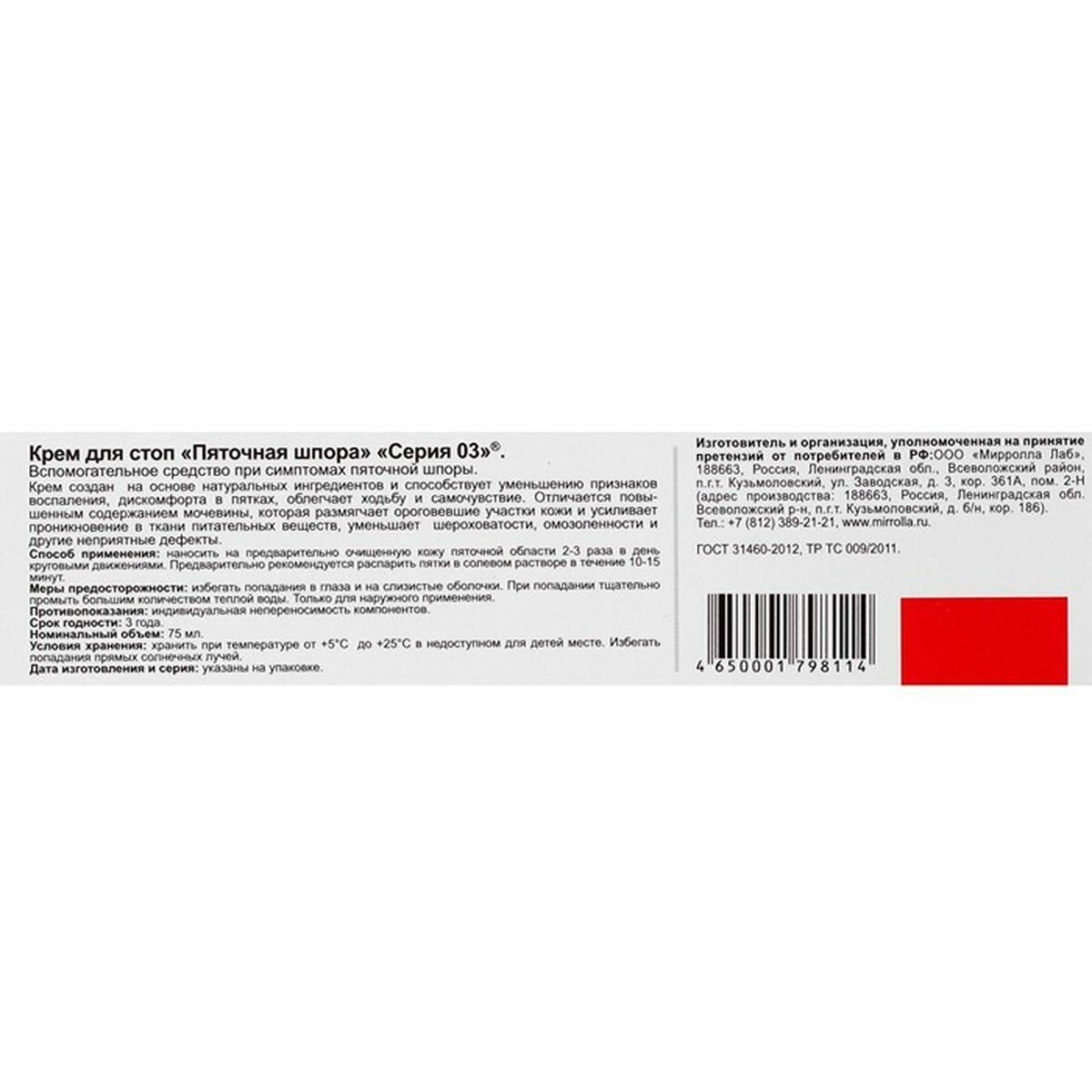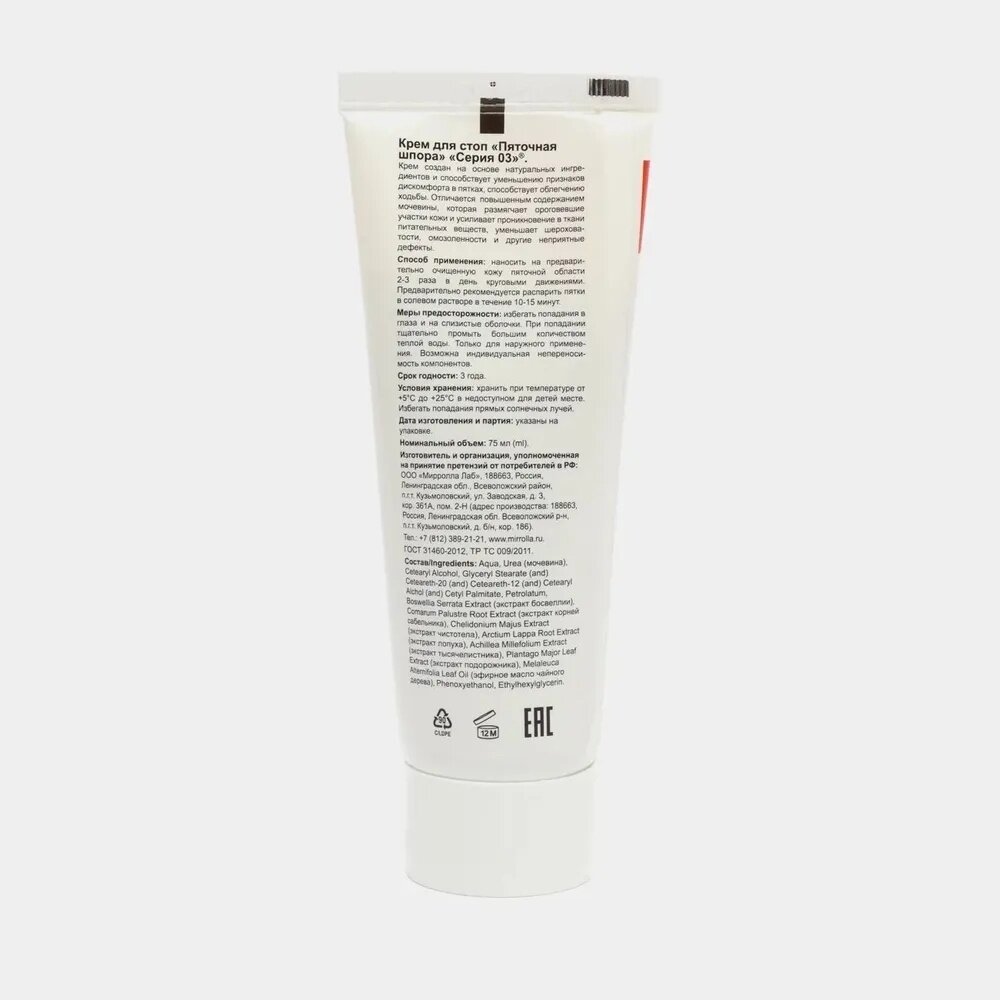 Mirrolla Крем «Серия 03. Пяточная шпора» для стоп, 75 мл