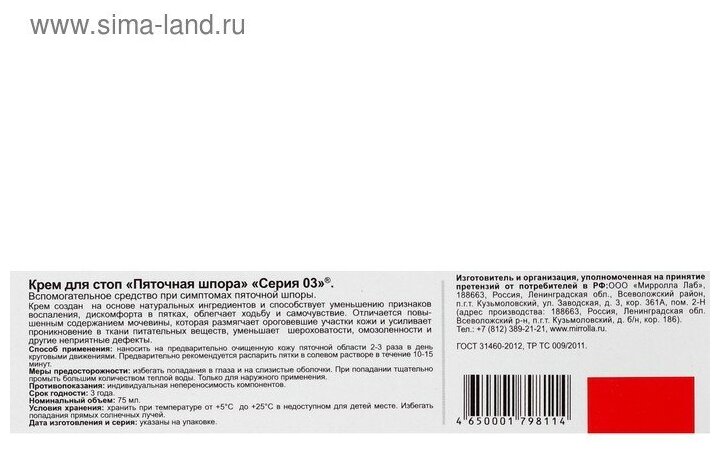 СохранитьСерия 03 Крем Пяточная шпора для стоп 75 мл 1 шт интересное: