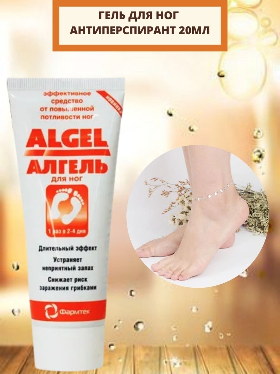Гель-антиперспирант для ног алгель для устранения потливости ног, туба 20 мл.