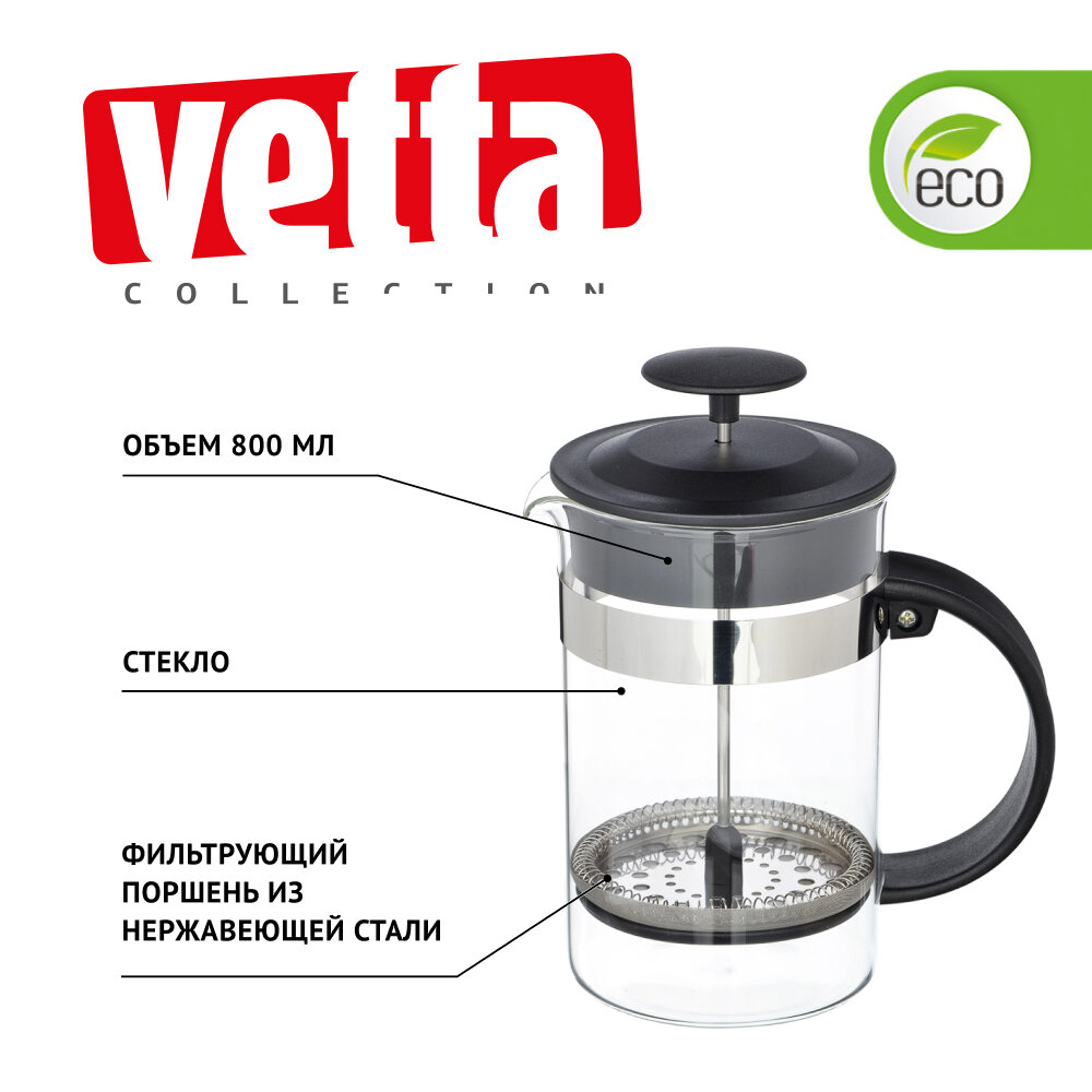 Купить Френч-пресс Vetta Флор 850074 (0,8 л) черный 19 см 0.8 л