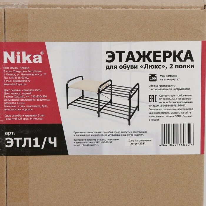 Купить Обувница Nika Люкс ЭТЛ1, размер (ШхГxВ): 79х33х36 см, цвет: слоновая кость/черный