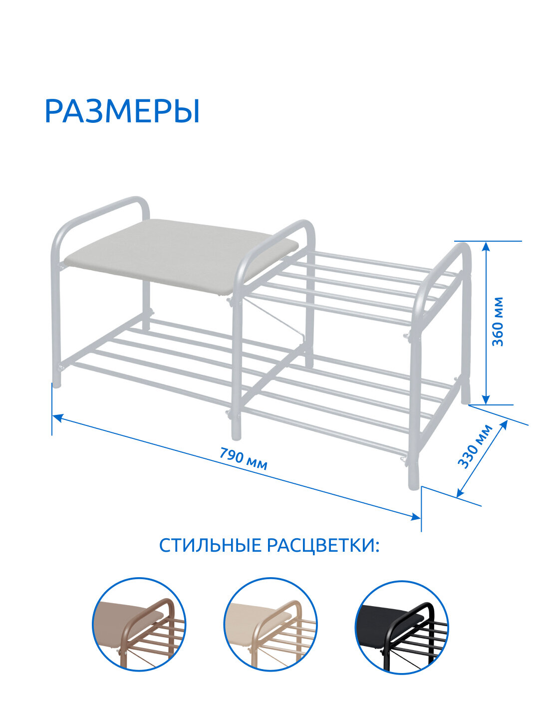 Этажерка для обуви/ обувница в прихожуюНика "Люкс" ЭТЛ1/С (подставка с двумя полками, с сиденьем, металл,79х33х36, Grey)