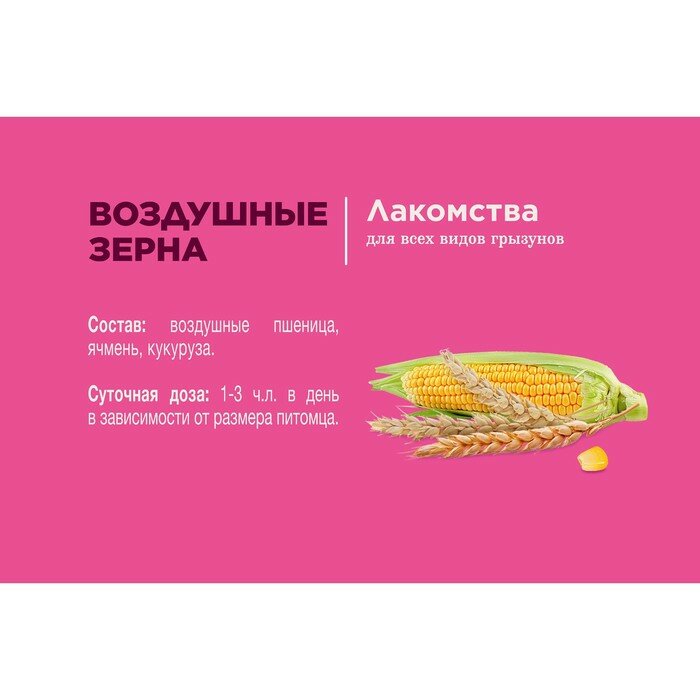 | Плюсы: | Шикарная витаминная добавка для грызунов, легкие хлопья попкорна, взвесь орешков |