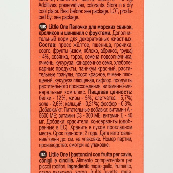 Little One Палочки для морских свинок с фруктами, 2 х 60 г интересное: