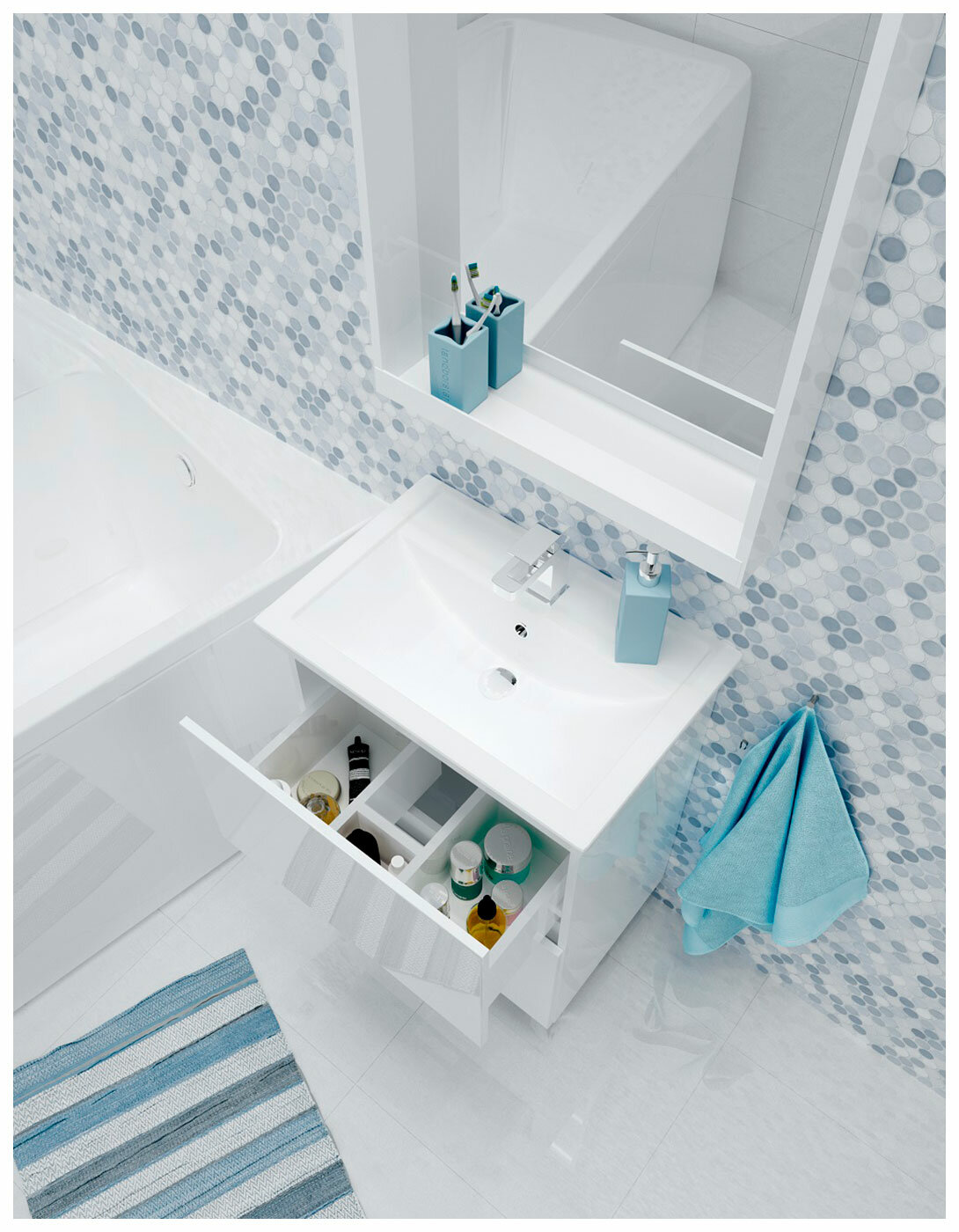 Тумба для ванной Aris 60Н 2я. Белый глянец
