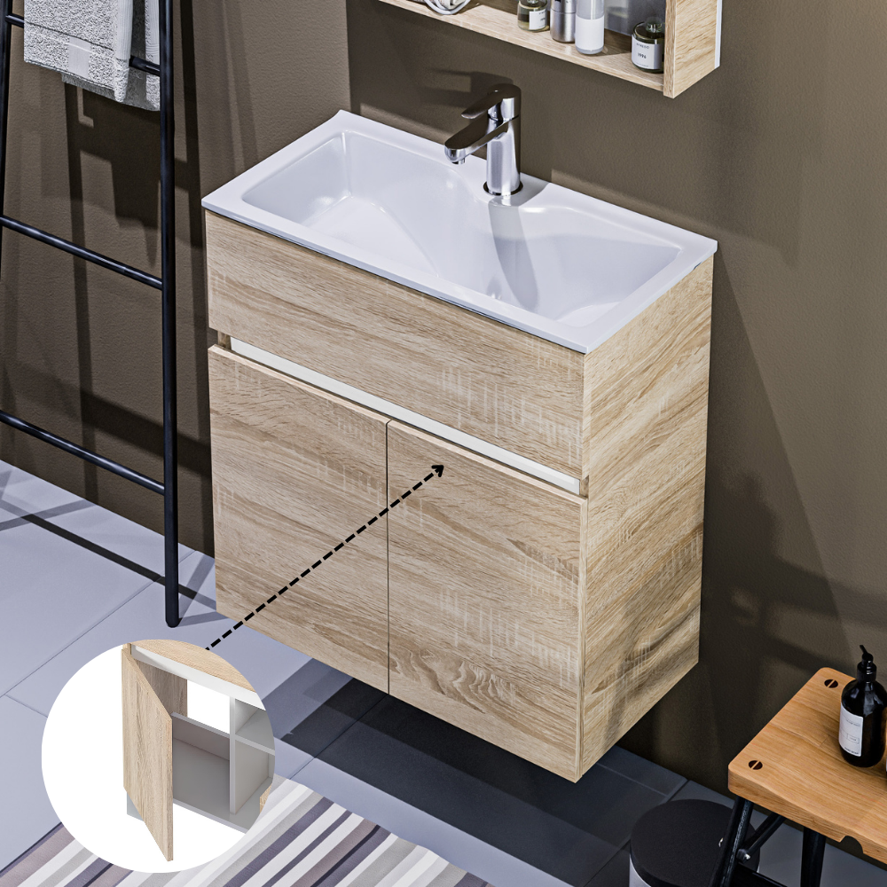 Купить Тумба для ванной с раковиной подвесная Mira 60П 2д. Дуб Сонома У75337