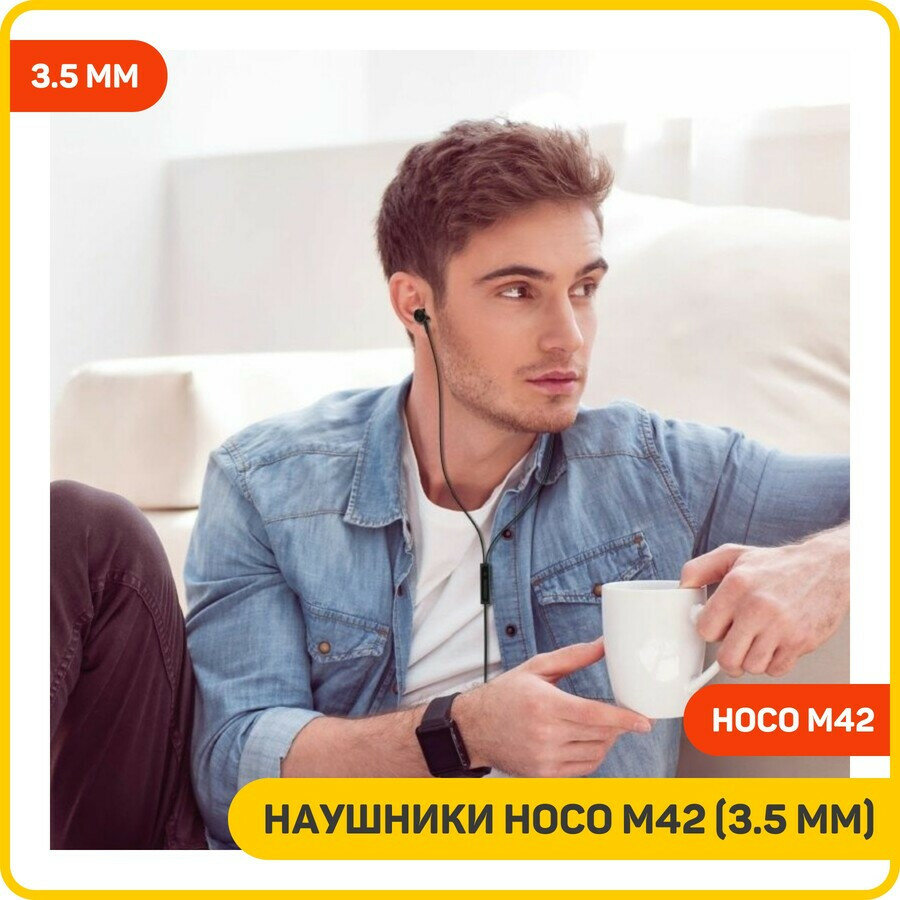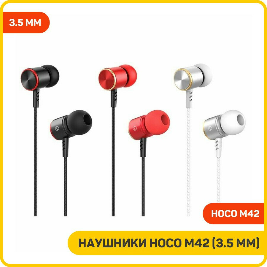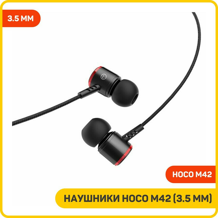 Наушники Hoco M42, проводные, вакуумные, микрофон, jack 3.5 mm, 1.2 м, черные