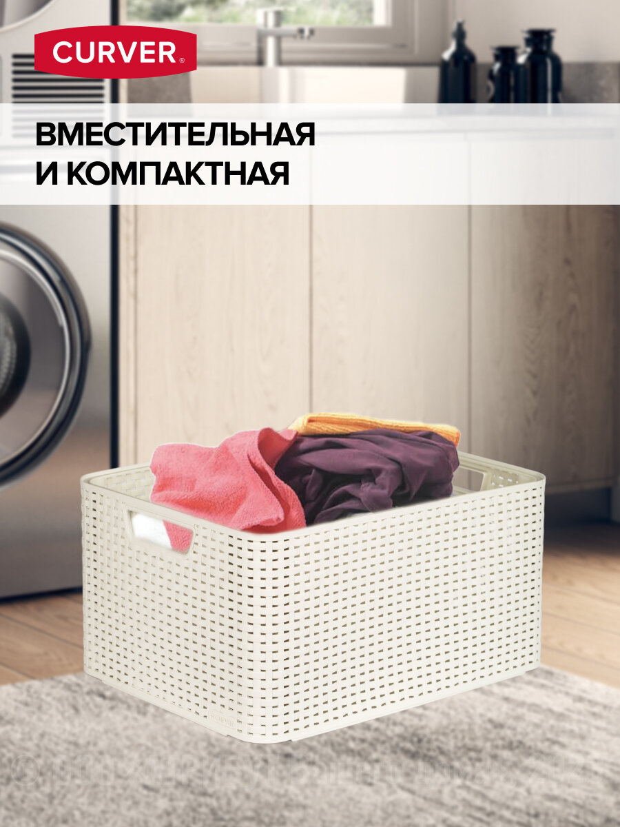 Корзина RATTAN STYLE BOX L кремовая,CURVER