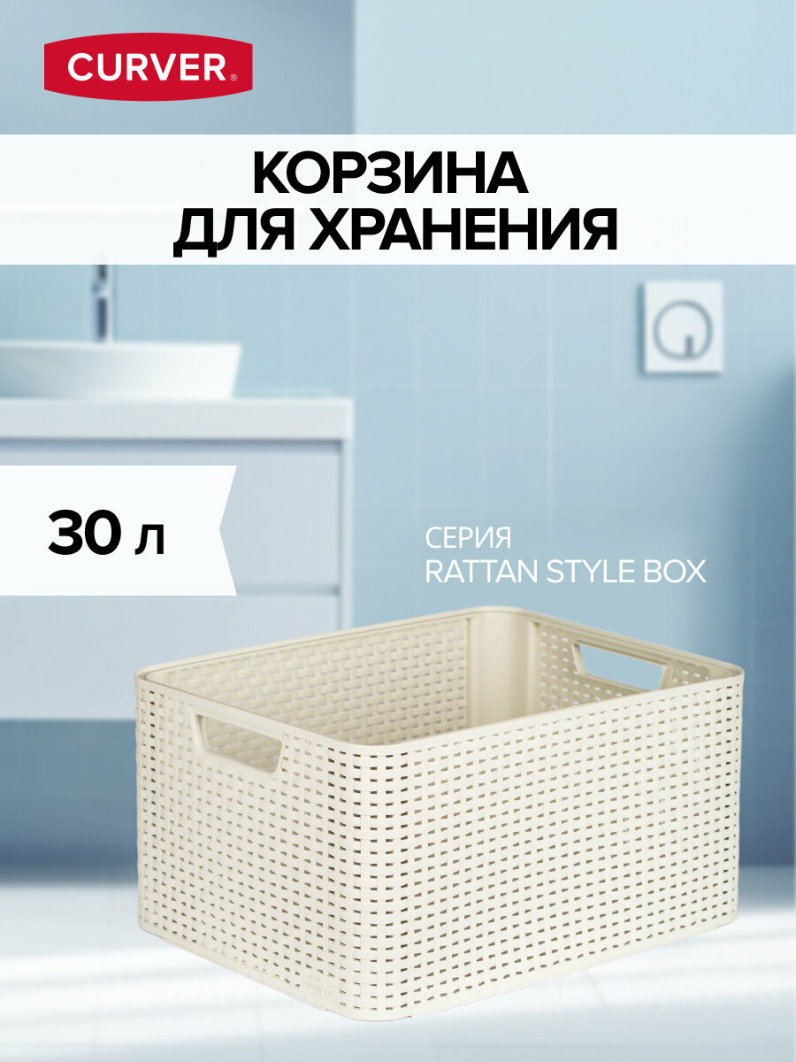 Корзина RATTAN STYLE BOX L кремовая,CURVER