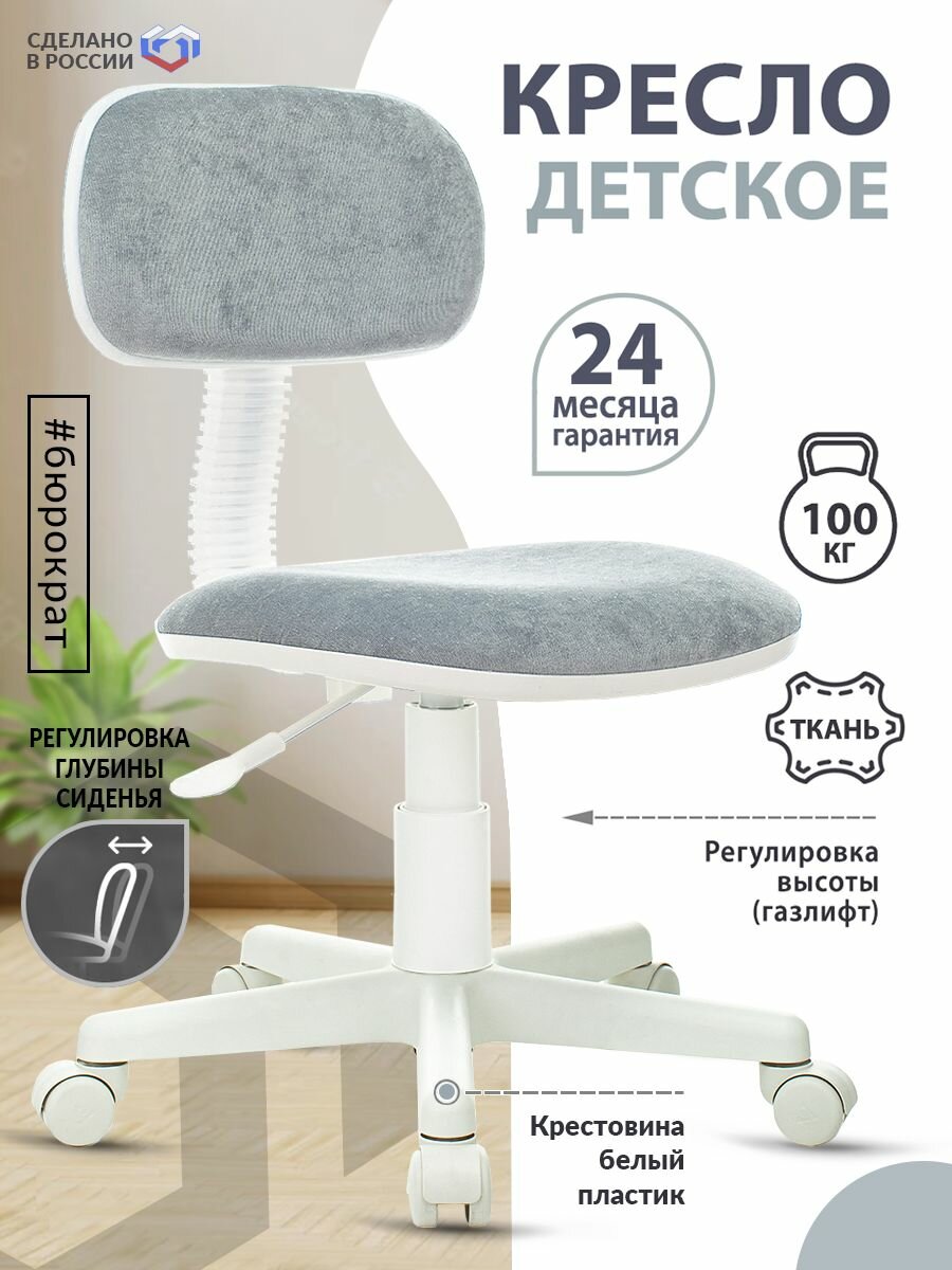 Купить Кресло детское Бюрократ CH-W201NX серо-голубой Light-28 крестов. пластик белый пластик белый