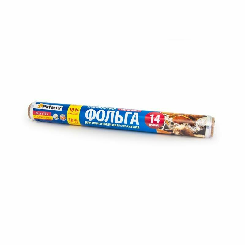 Фольга пищевая супер прочная Paterra, акция, 29см*10м+1 (рулон в пленке)