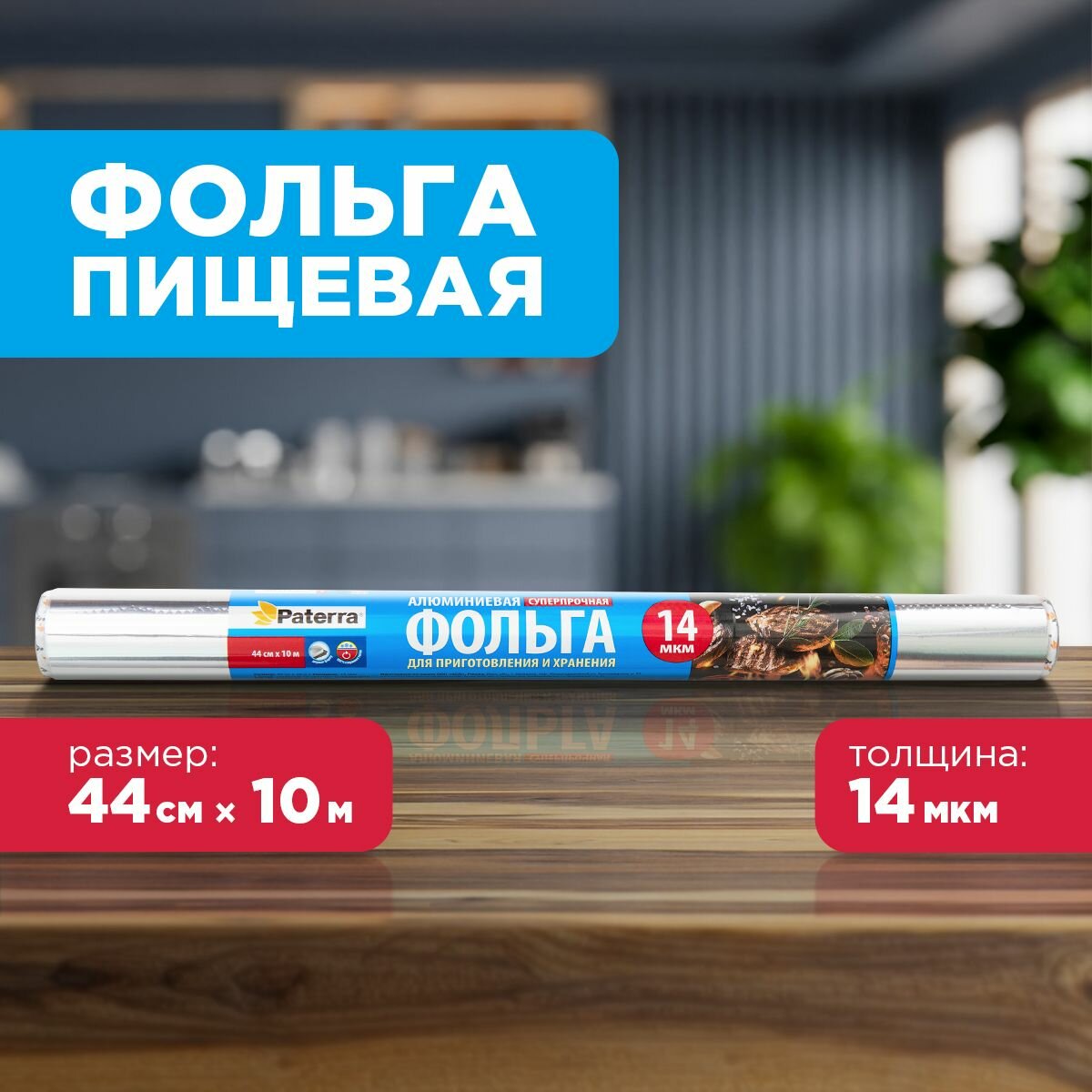 Пищевая фольга PATERRA супер прочная, 44 см, 10 м, рулон в пленке 209-037
