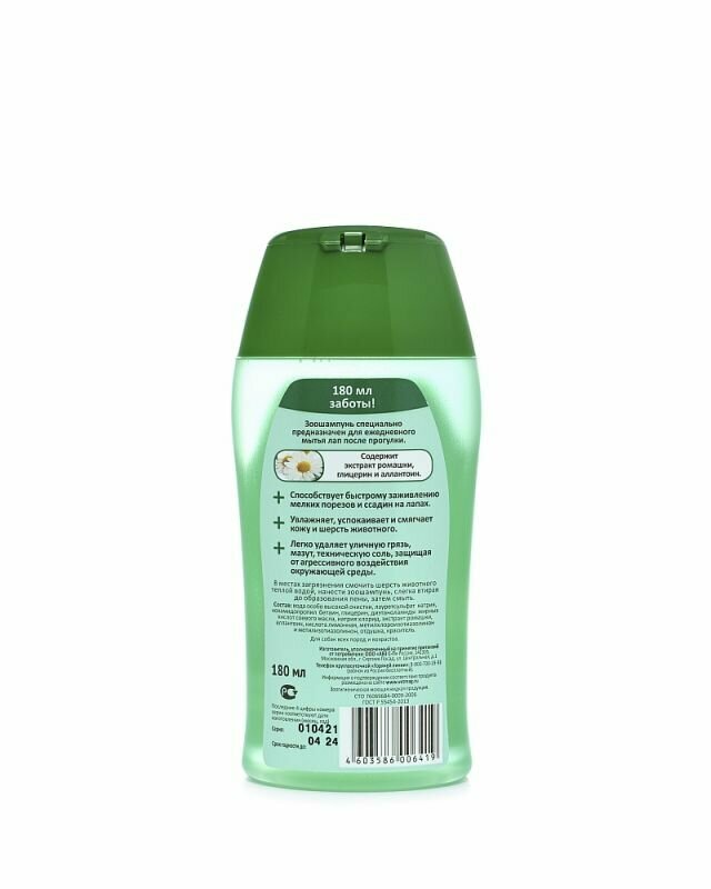 Шампунь четыре лапы, для ежедневного мытья лап у собак180мл, УТ-00014997 (1 шт)
