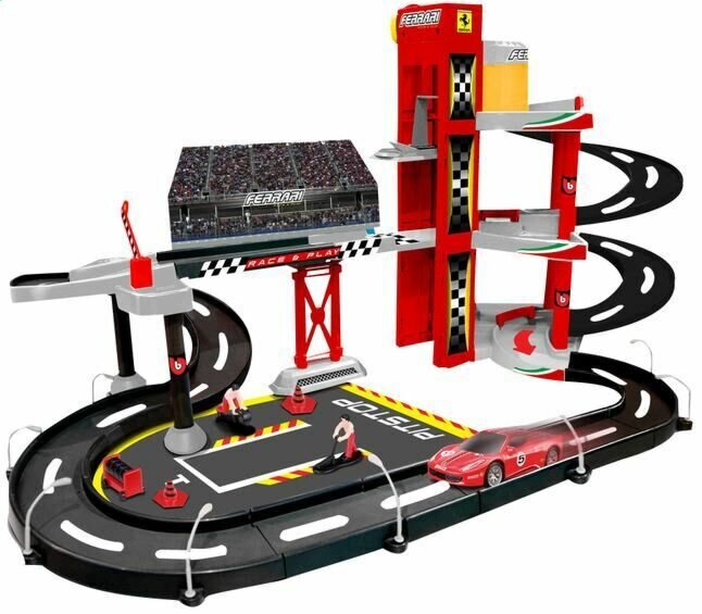 Гараж Bburago с гоночной трассой + 1 машинка 18-30197 1:43 Ferrari R&P - Racing Garage