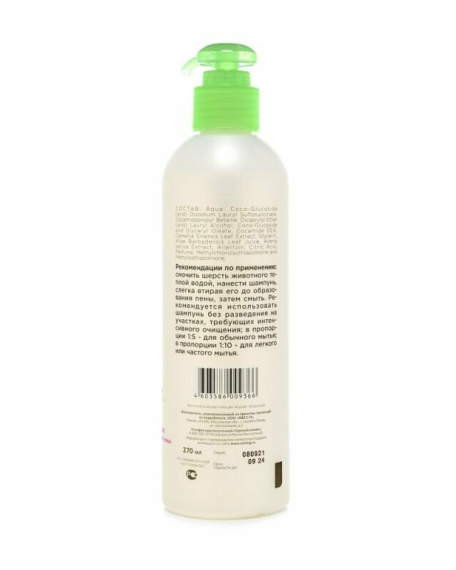 | Плюсы: | Лёгкий приятный запах, не пенится, как стиральный порошок, довольно легко смывается с шерсти, собака после него не чешется, удобный дозатор |