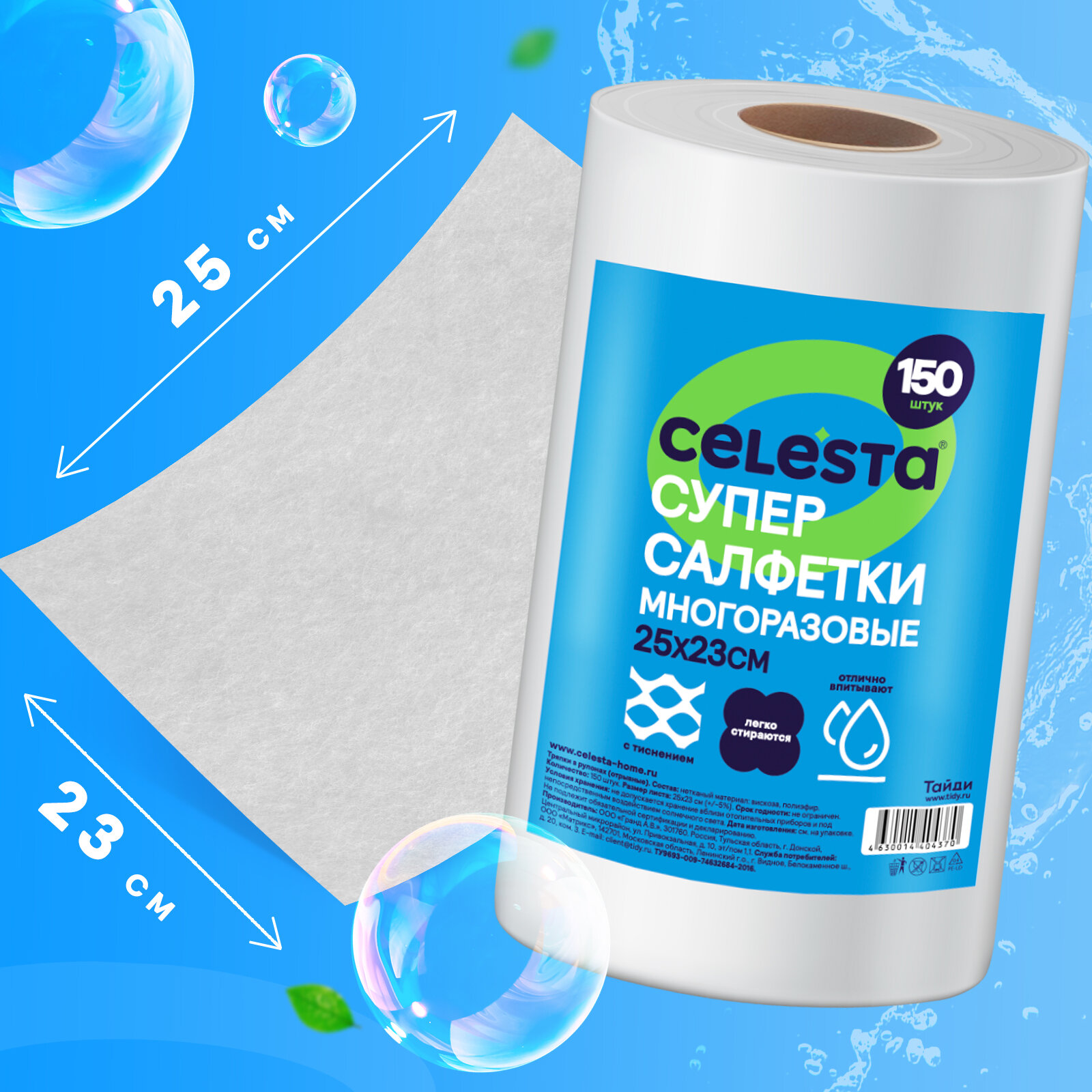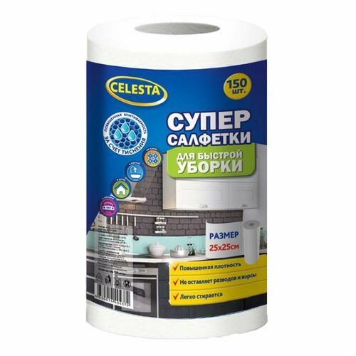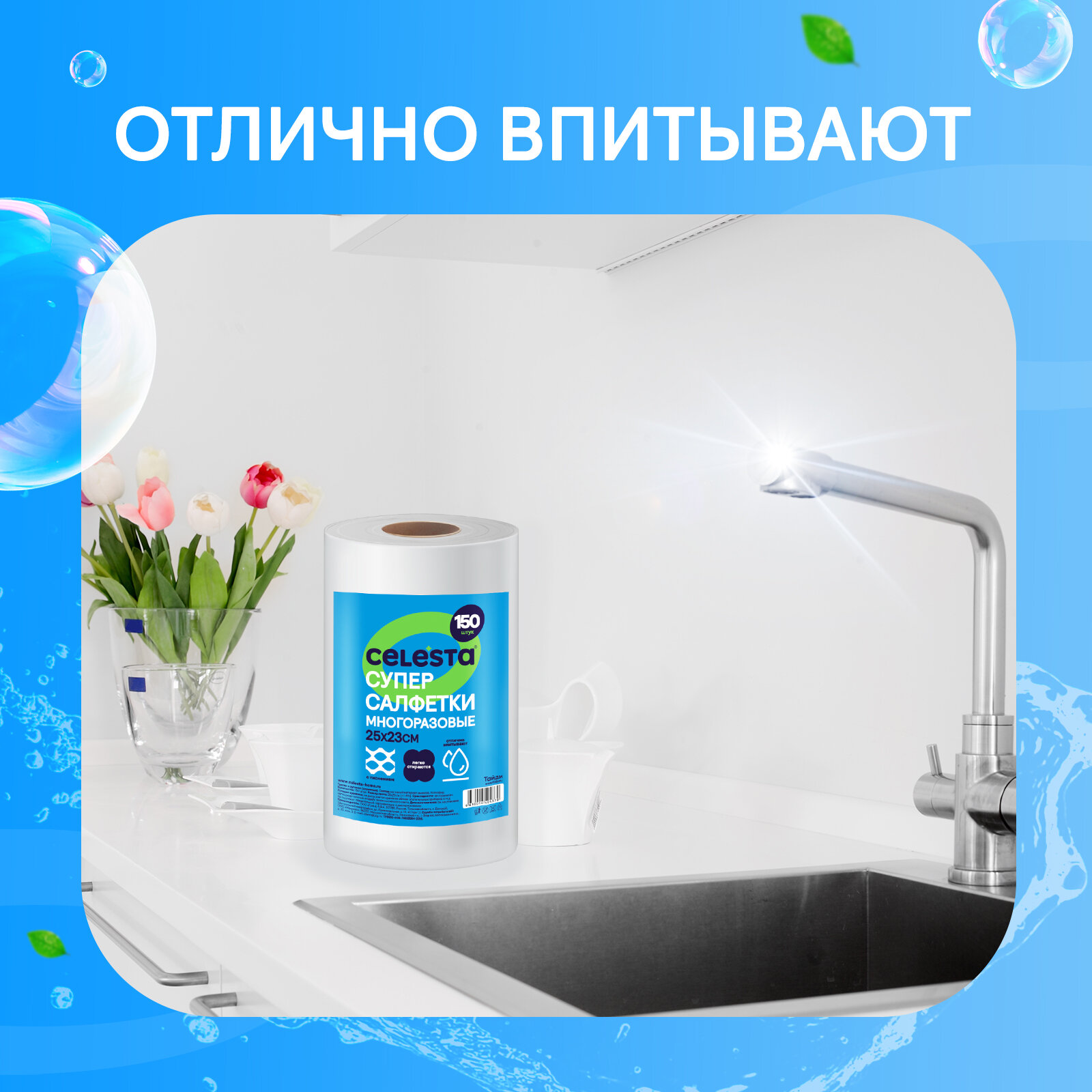 Купить Салфетки для уборки Celesta универсальные в рулоне для кухни, ванной и дома, 150 штук