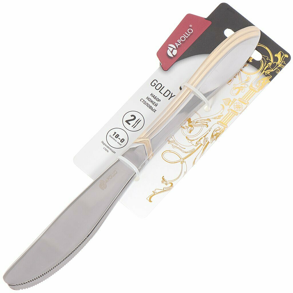 Нож нержавеющая сталь, 2 предмета, столовый, Apollo, Goldy, GLD-33