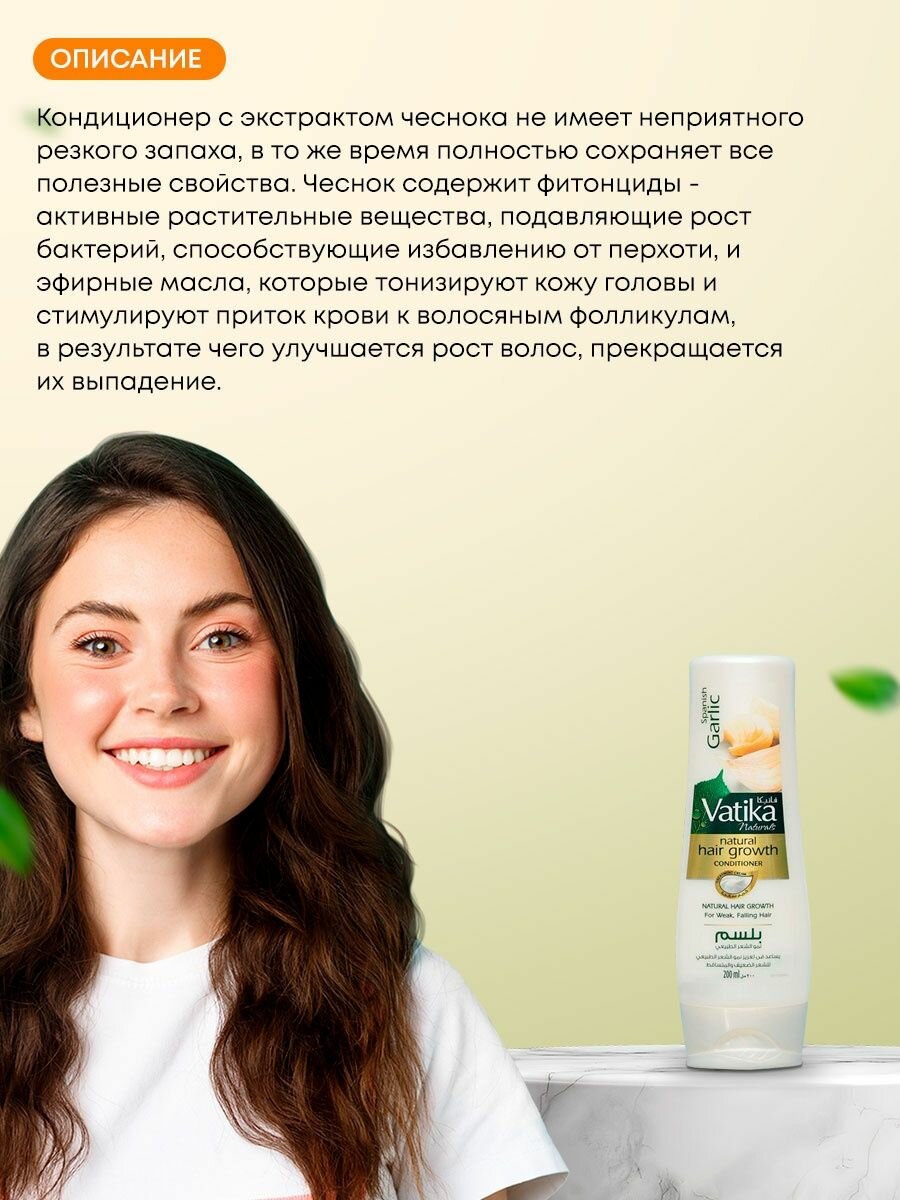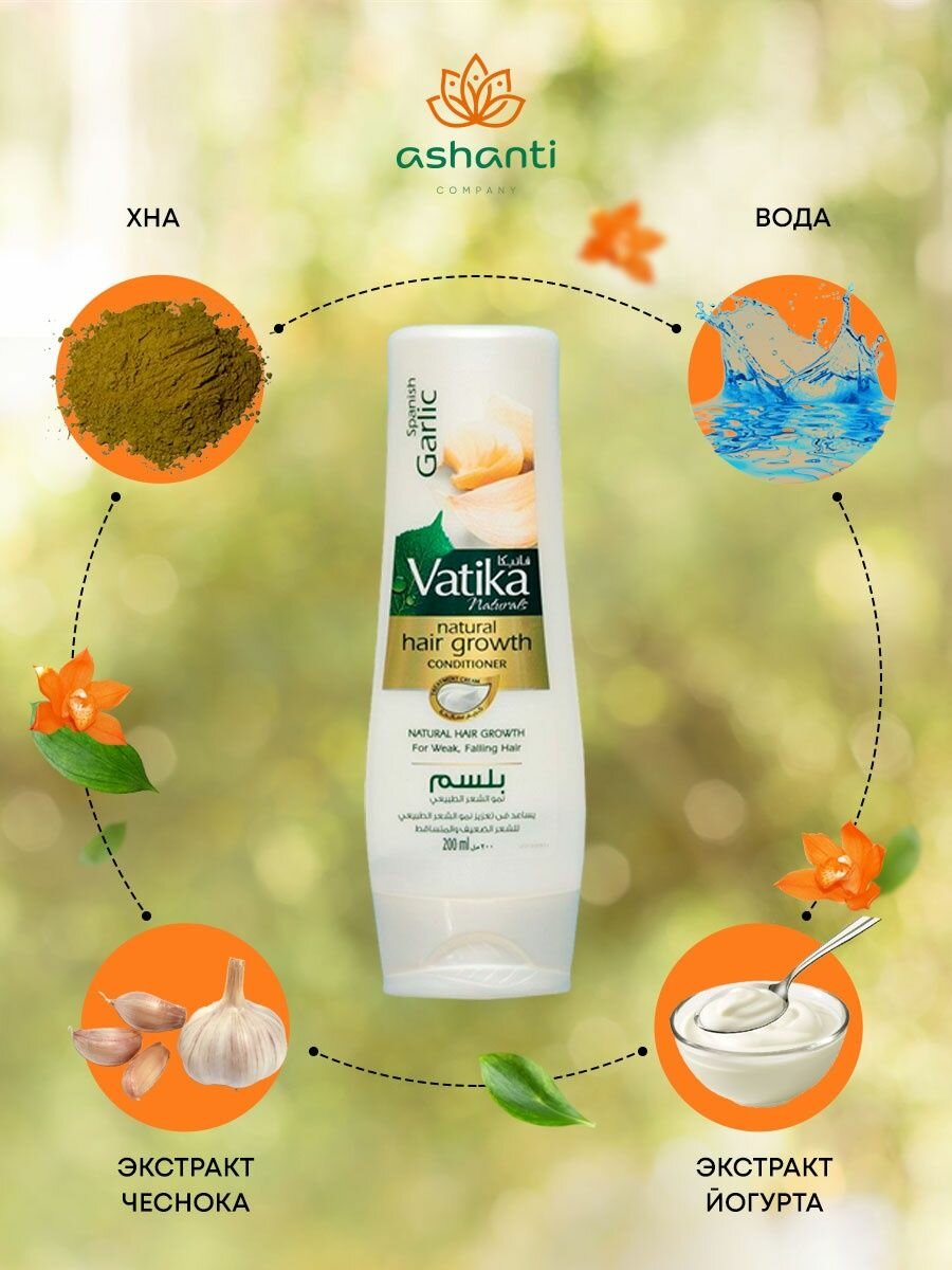 Vatika Garlic/Кондиционер с экстрактом чеснока, для ломких и выпадающих волос, 200 мл