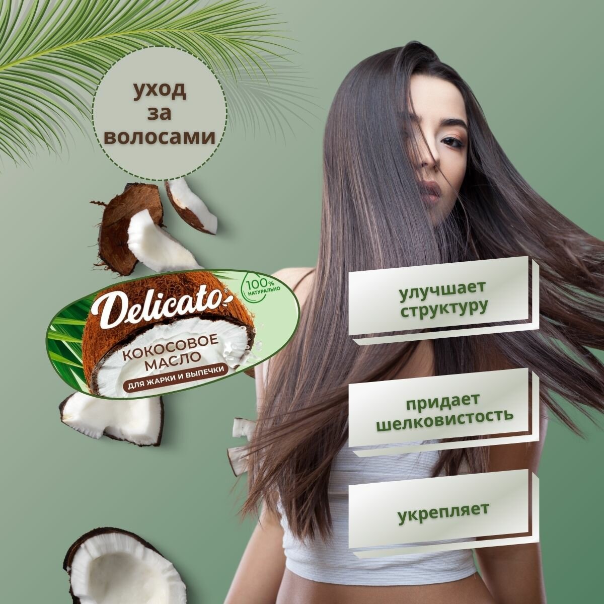 СохранитьКокосовое масло Delicato 800 г ( 2х400 г) пищевое для жарки, выпечки и фритюра интересное: