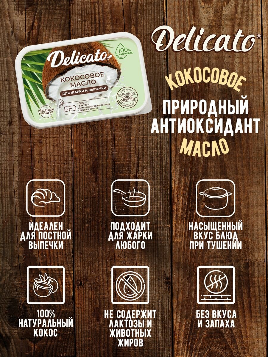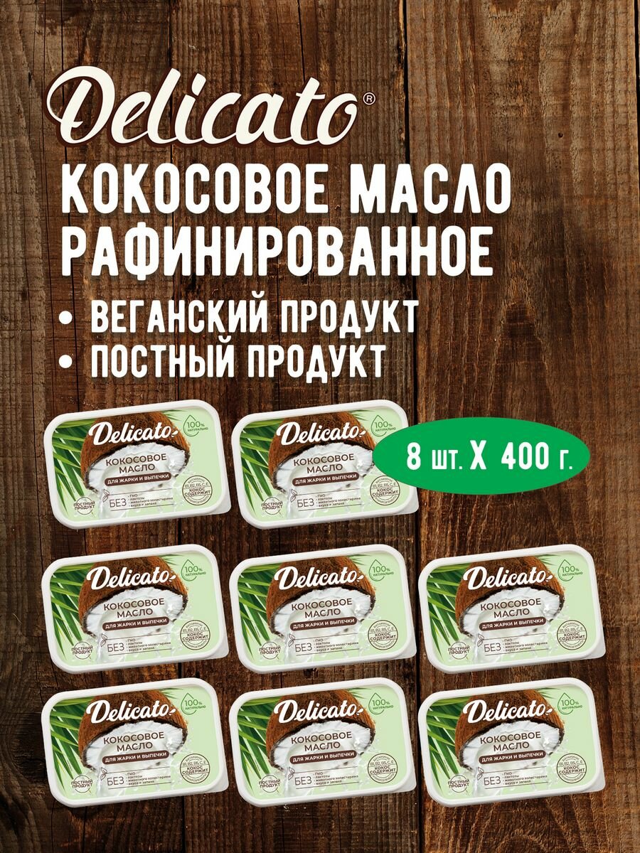 СохранитьКокосовое масло Delicato 3200 г (8 х 400г) пищевое для жарки, выпечки и фритюра интересное: