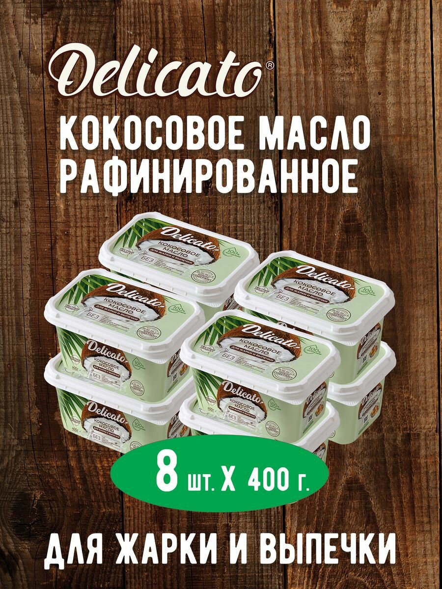 Купить Кокосовое масло Delicato 3200 г (8 х 400г) пищевое для жарки, выпечки и фритюра