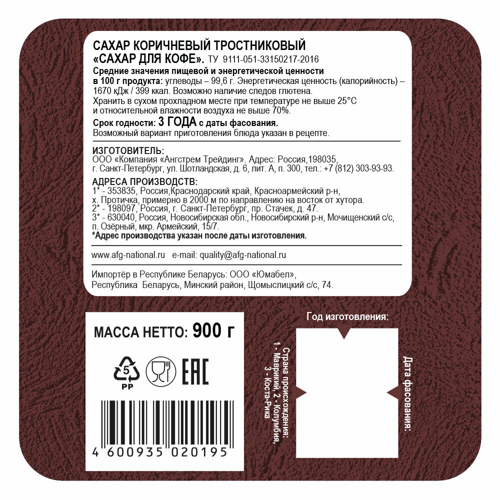 Сахар Националь "Для кофе" тростниковый 900 г интересное: