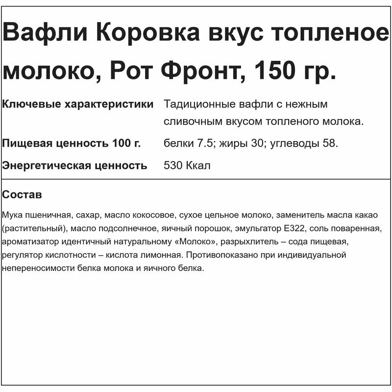 Вафли РОТ фронт "Коровка" со вкусом топленого молока, 150 г, РФ06638 интересное:
