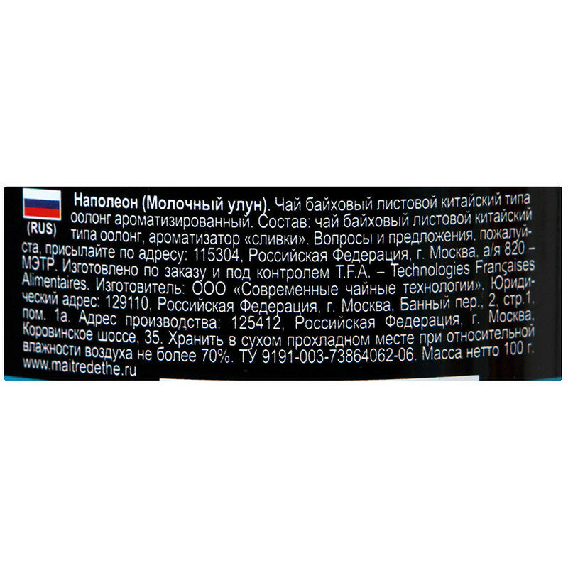 Купить Чай листовой MAITRE "Наполеон" улун молочный 100 г, жестяная банка, бар030р