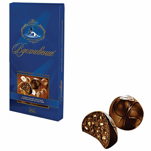 Конфеты Вдохновение Шоколадное пралине с дробленым фундуком, 400 г, картонная коробка, 24 шт. в уп.