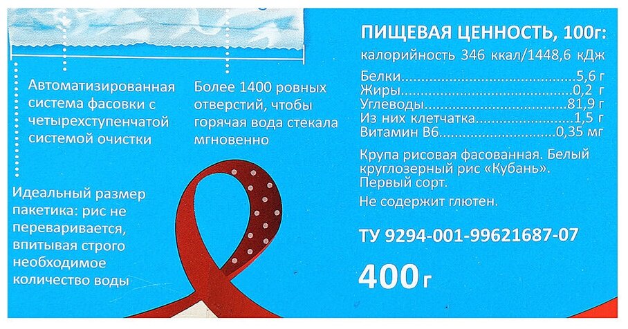 Рис круглозерный мистраль Кубань 1-й сорт, в пакетиках, 5х80г