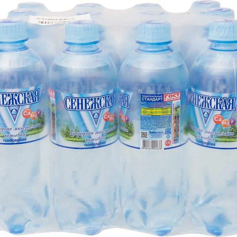 Вода минеральная питьевая Сенежская газированная 0.5 л ПЭТ упаковка 12 штук