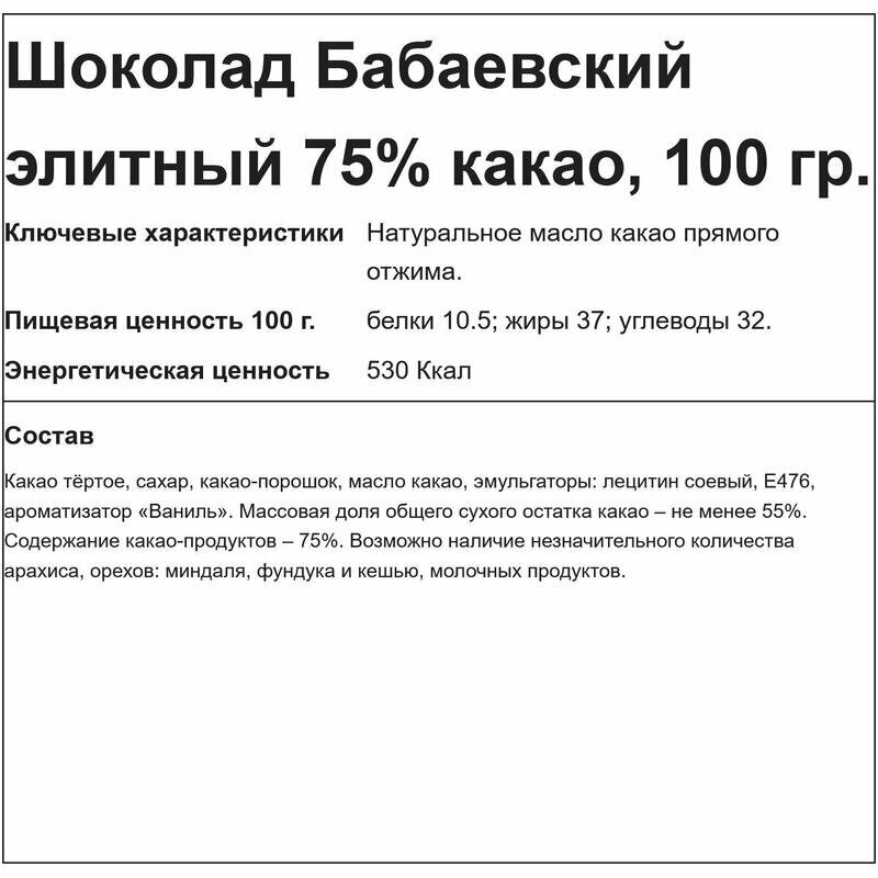 Кк Бабаевский Шоколад Бабаевский Элитный 75% (100 г)