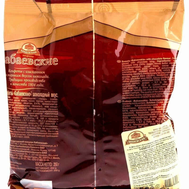 Конфеты шоколадные бабаевский "Оригинальные", 250 г, ш/к 82026, ББ09868 623349 интересное: